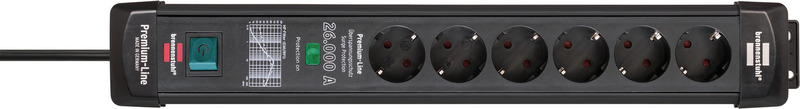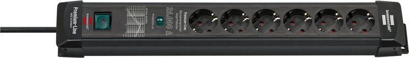 Шестиконтактный удлинитель Premium-Line от Brennenstuhl черного цвета с кабелем длиной 1,8 м впечатляет своим качеством и безопасностью во всех областях.