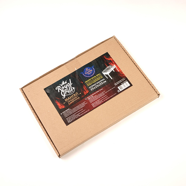 Складной мангал ROYALGRILL в коробке имеет большие размеры корпуса, что позволяет готовить сразу на большую компанию. Складная конструкция облегчает переноску и хранение изделия.