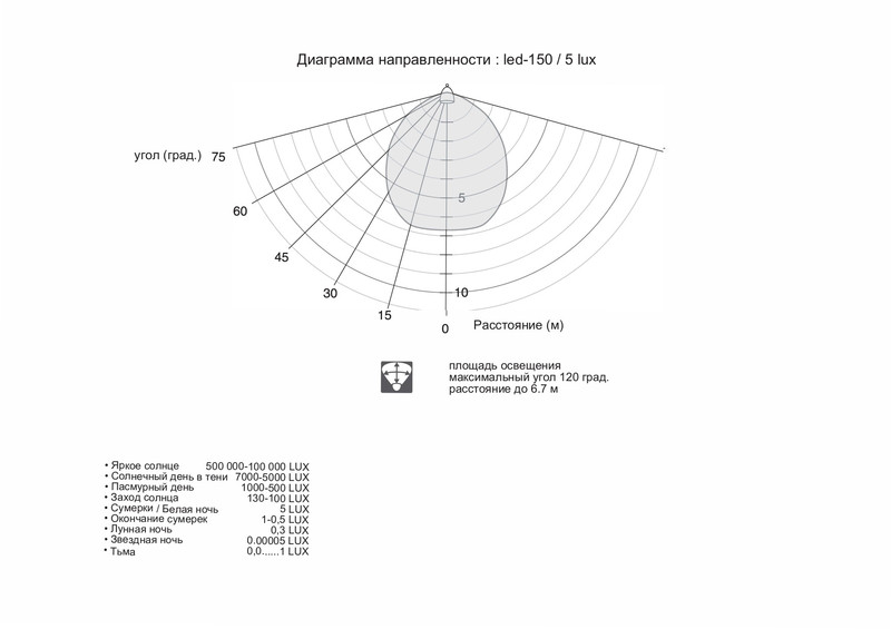 • Чувствительность датчика позволяет автоматически включать прожектор RITEX LED-150 при обнаружении движения на расстоянии более 6 метров с углом сектора в 140 градусов.