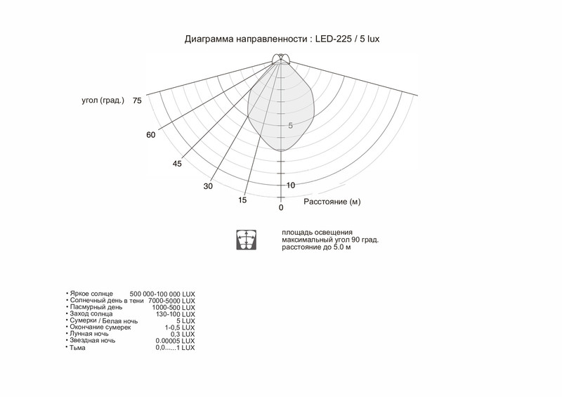 • Чувствительность датчика позволяет включать светодиодный автономный прожектор RITEX LED-225 при обнаружении движения на расстоянии более 6 метров с углом сектора в 140 градусов.