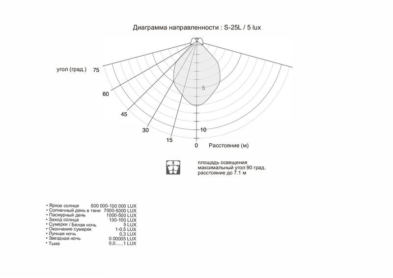 • Чувствительность датчика позволяет включать прожектор при обнаружении движения на расстоянии более 6 метров с углом сектора в 140 градусов.
