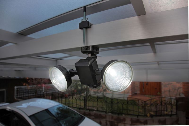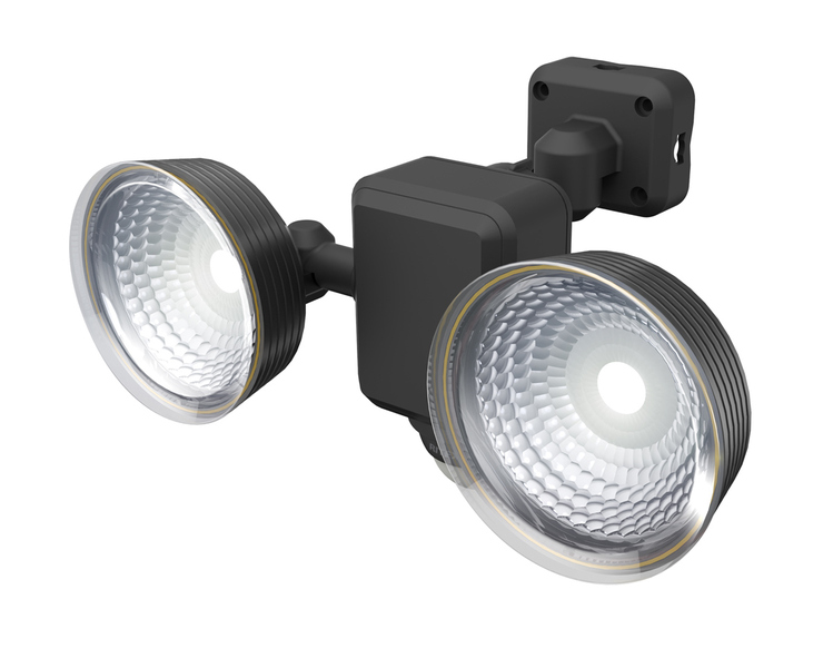 • Прожектор оснащён двумя независимыми лампами, каждая из которых содержит составной светодиод с четырмя сверхяркими элементами. Яркость свечения аналогична лампе накаливания в 30 Вт и обеспечивает освещение площади около 20 квадратных метров.