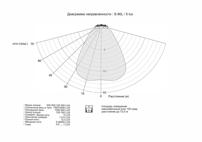 • Чувствительность датчика позволяет включать прожектор при обнаружении движения на расстоянии более 8 метров с углом сектора в 140 градусов.