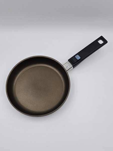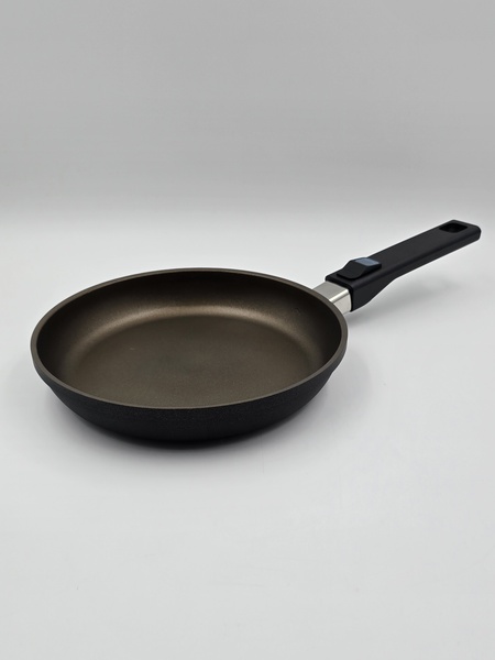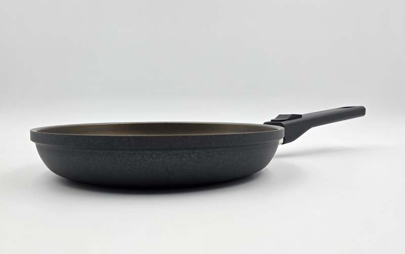 • Усиленное трехслойное антипригарное покрытие подходит для нежирной и деликатной жарки и на 100% не содержит вредных веществ, таких как PFOA.