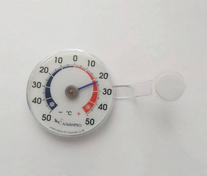 Оконный биметаллический термометр RST 02089 работает, используя свойство биметаллической пружинки сворачиваться-раскручиваться при изменении температуры. Особенно удобно крепление: простая липучка клеится прямо на стекло и держится очень крепко, несмотря на дождь и ветер.